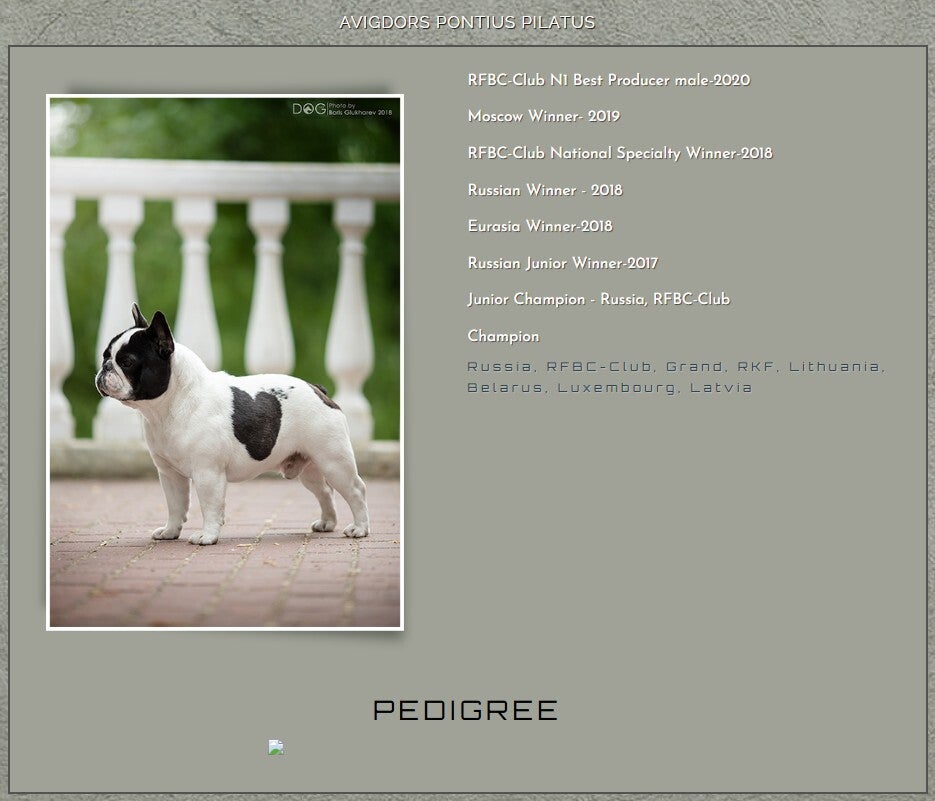Very Promising,baby bob,puppy winer , 6XCW 5XJBOB 5JCAC, 5PRM ,10BOB ,3x JBIG-1 6xBIG-2 BIS III 5X CACIB Junior Champion Serbia2019 Junior Champion Montenegro 2019 Cruft Qualification 2020 Champion Macedonia Champion Montenegro CH Serbia , Champion Bosnia and Hercegovina Champion of Republick Srpska Internacional Champion